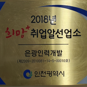 인천 광역시에서 구직자들이 안전하게 일자리를 구할 수 있고 구인자들은 믿고 일을 맡길 수 있는 모범직업소를 선정하는 희망+ 취업알선소에 선정되어 모범적인 취업 알선 업무를 인정받았습니다.